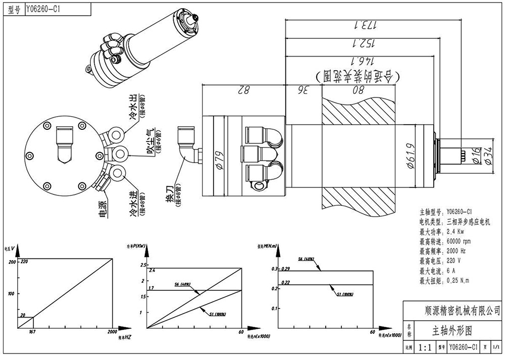 转速:6万转,频率:2000HZ,功率:2.4KW,电机类型:三相异步感应电机,额定电流:6A,电压:220V,额定扭矩:(N.m)0.25,夹持范围:6mm夹头