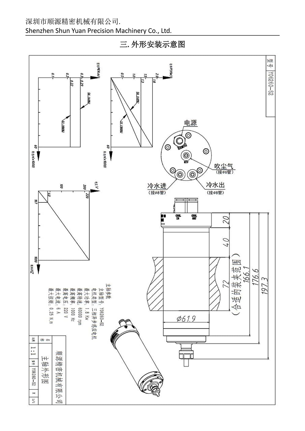 回転数:6万回転、周波数:1000 HZ、定格電力:1.8 KW、モータタイプ:三相非同期誘導モータ、定格電流:6 A、電圧:220 V、定格トルク:(N.m)0.25、クランプ範囲:ER 11
