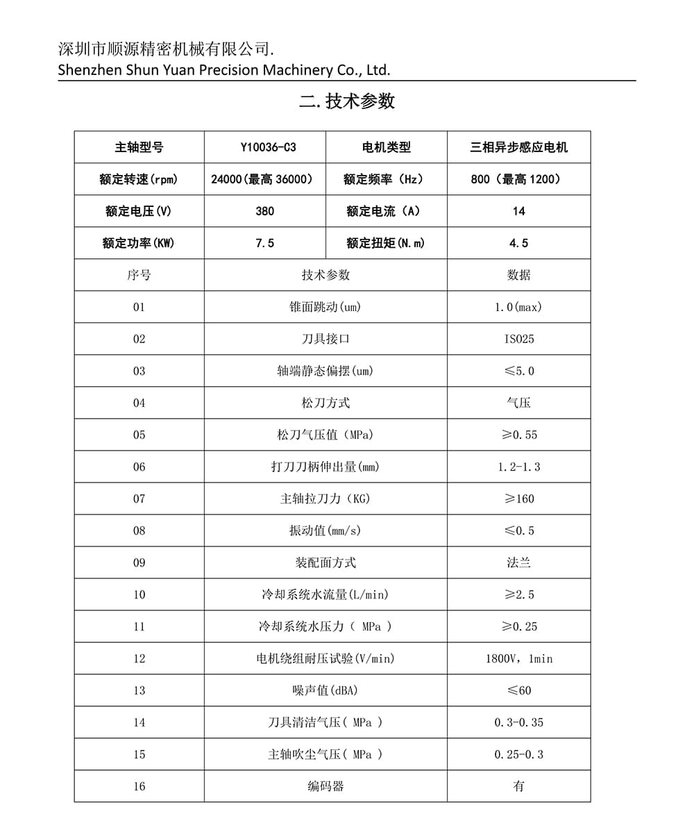 Dönme hızı: 36.000 dönüş, Frekans: 1200Hz, Nominal güç: 7.5kW, Motor tipi: Üç fazlı asinkron indüksif motor, Nominal akım: 14A, Gerilim: 380V, Nominal tork: (N.m) 4.5, Tutma aralığı: ISO25