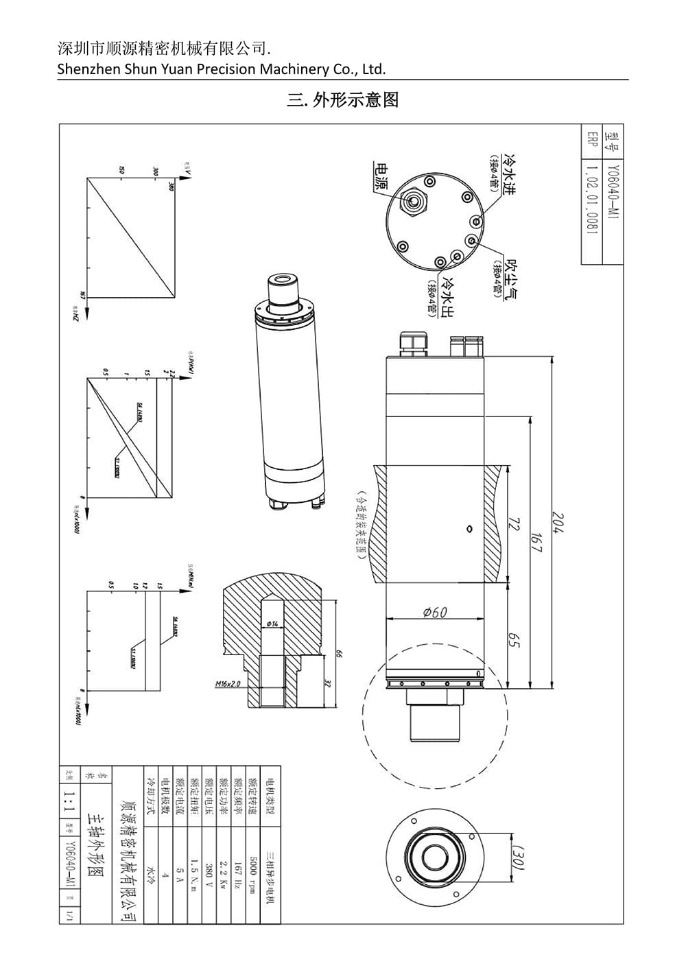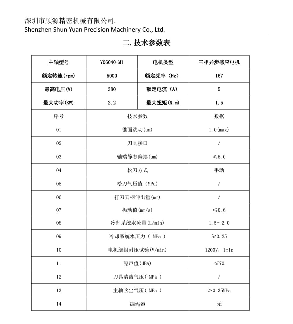 Dönüş hızı: 5 km dönüş, Frekans: 167Hz, Nominal güç: 2.2kW, Motor tipi: Üç fazlı asinkron indüksif motor, Nominal akım: 5A, Gerilim: 380V, Nominal tork: (N.m) 1.5, Tutma aralığı: /