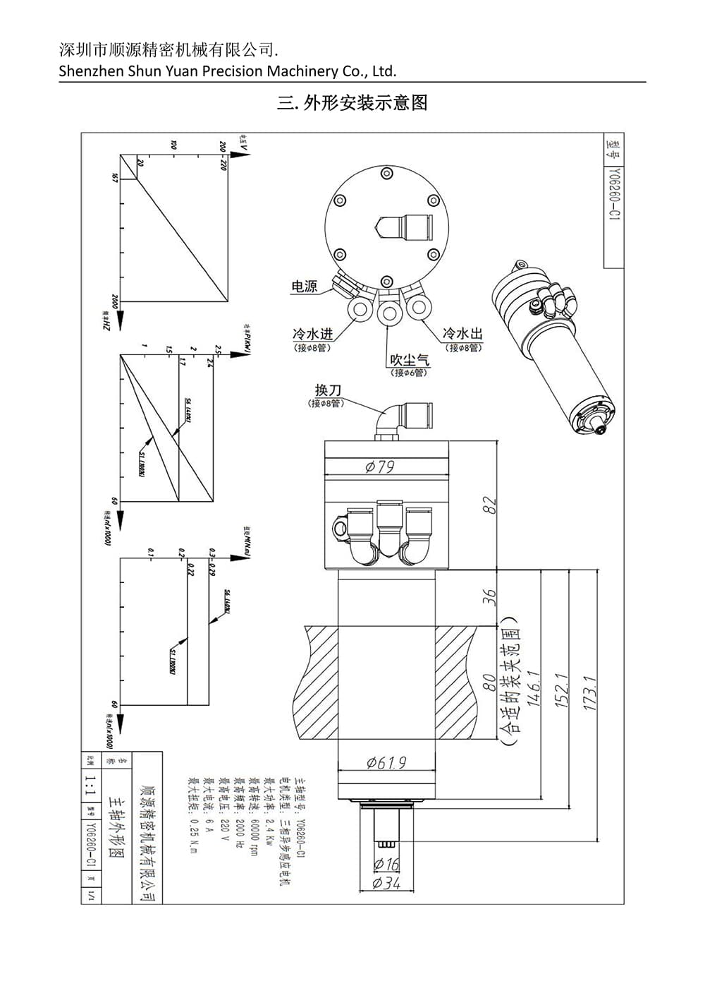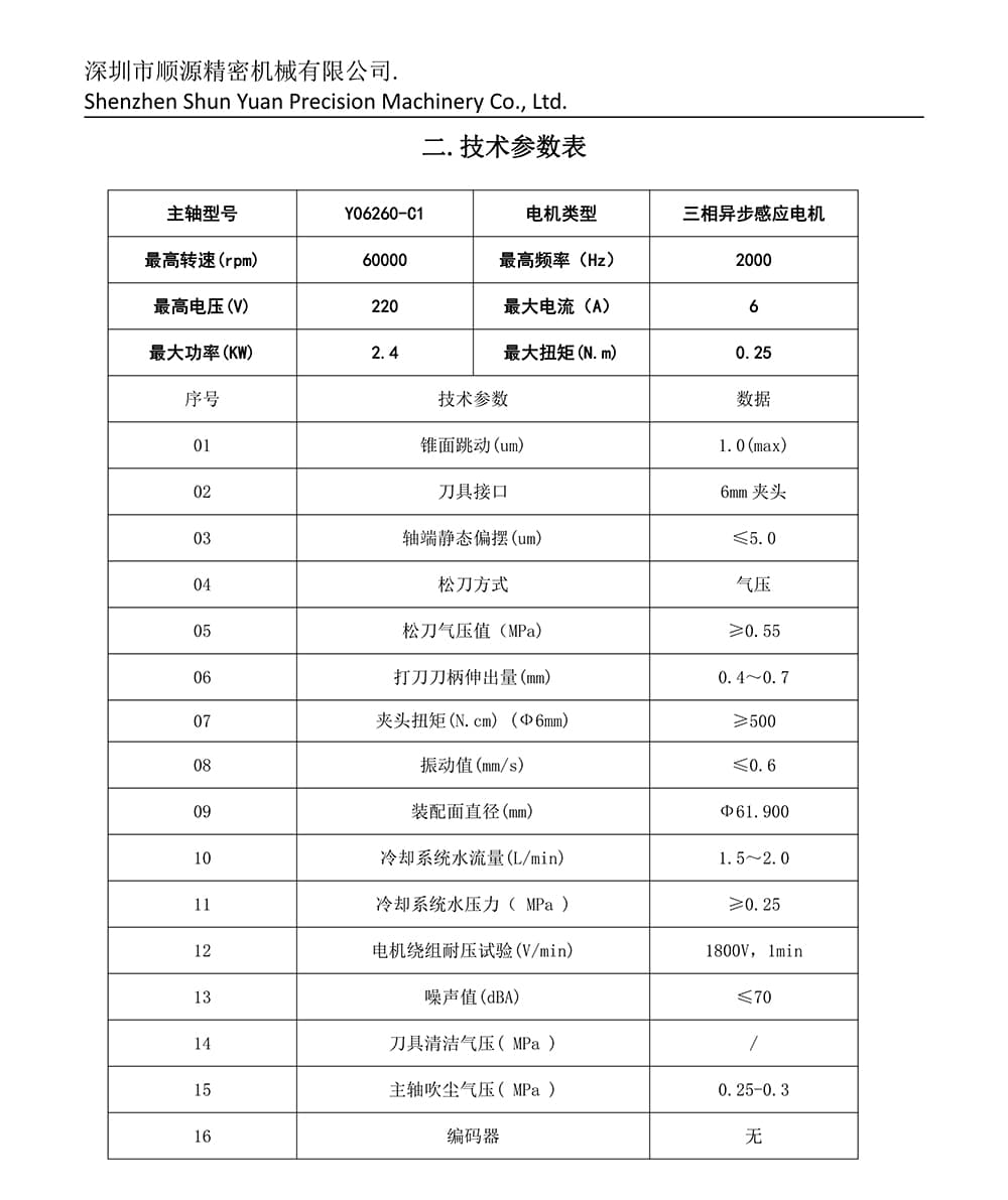 Dönüş hızı: 60.000 dönüş, Frekans: 2000Hz, Nominal güç: 2.4kW, Motor tipi: Üç fazlı asinkron indüksif motor, Nominal akım: 6A, Gerilim: 220V, Nominal tork: (N.m) 0.25, Tutma aralığı: 6mm klip
