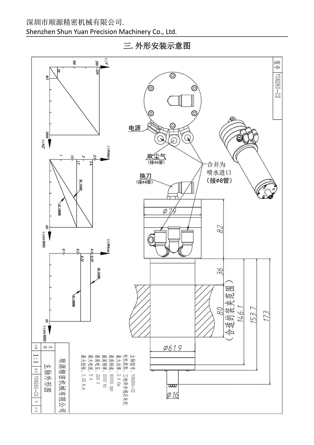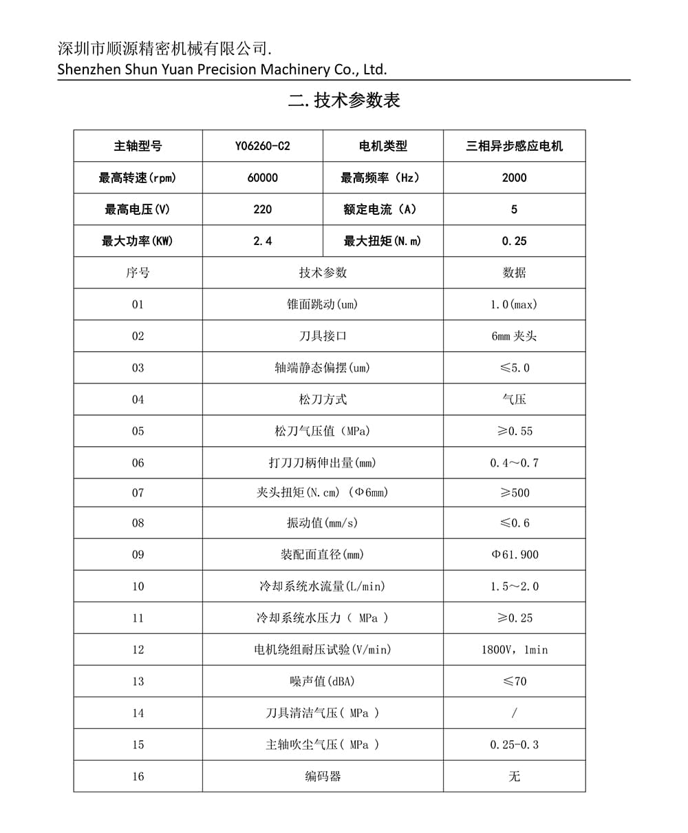 Dönme hızı: 60.000 dönüş, Frekans: 2000Hz, Nominal güç: 2.4kW, Motor tipi: Üç fazlı asinkron indüksif motor, Nominal akım: 5A, Gerilim: 220V, Nominal tork: (N.m) 0.25, Tutma aralığı: 6mm klip