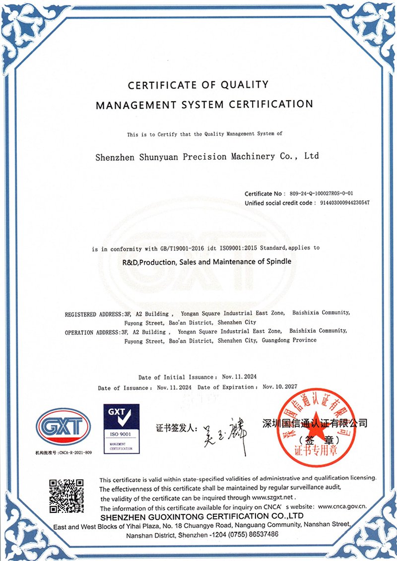 ShunYuan precisionIs a focus on the precision of motorized spindle research and development, manufacturing, sales, maintenance as one of the high-tech enterprises, relying on professional in the field of precision machinery processing, industrial automation technology development team, sophisticated manufacturing technology and the continuous innovation of management idea, the rapid rise in the field of domestic high-end manufacturing equipment.